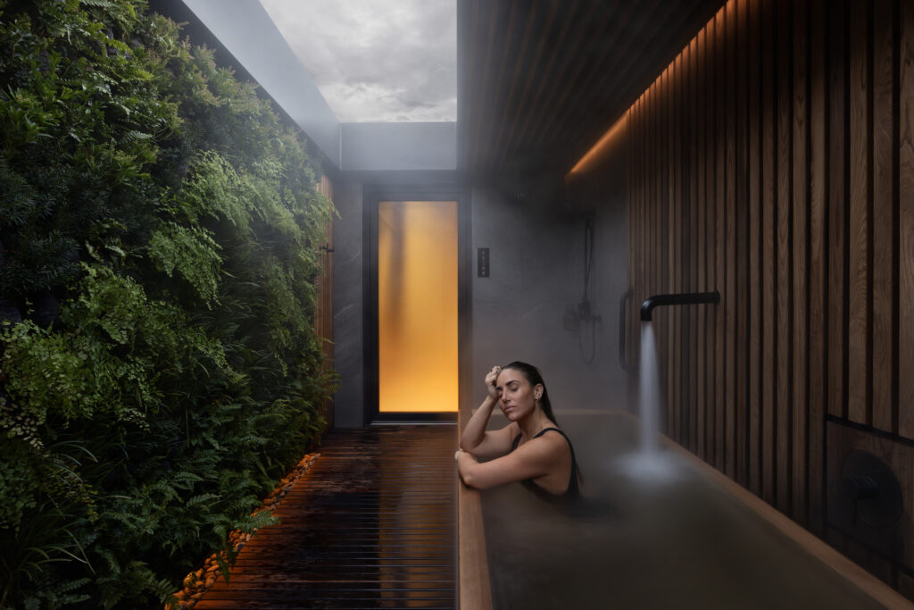 Circle Wellness is unlike any other spa. Guests can truly unwind and relax with a private experience at their fingertips with three unique experience offerings which include the hot and cold tubs, the stone bed, and the “WellPod.” The WellPod is a reinvention of the sauna: a multi-sensory wellness room featuring Himalayan salt walls, thermally modified wood finishes, multi-channel lighting, a radiant infrared heating system, fresh-air ventilation, and encompassing surround sound. Technology plays a critical role in driving the experience for guests as they take part in the circuits.